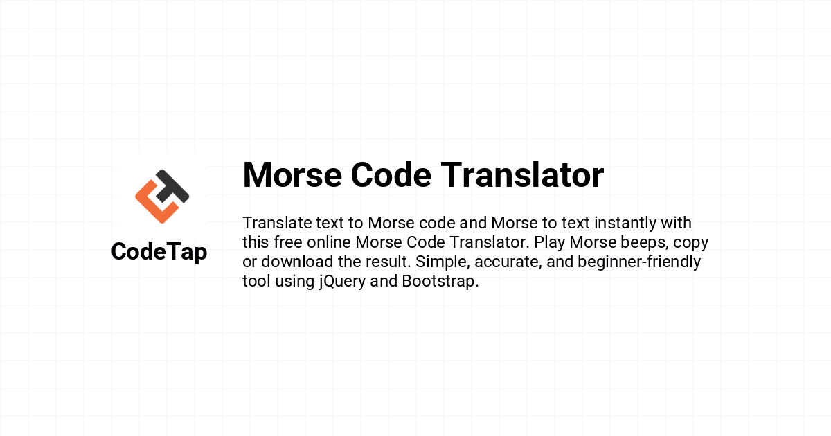 A fast and user-friendly web tool to convert text to Morse code and Morse code back to text instantly. It features a built-in Morse audio player that plays classic dot-dash beeps for each character. Built with jQuery and Bootstrap, the interface is clean, responsive, and works smoothly on any device.