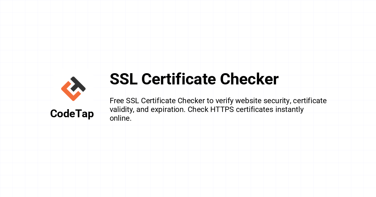 Verify the SSL certificate of any website instantly with our free SSL Certificate Checker. Ensure your website or any URL is secure, valid, and trusted by browsers. Perfect for webmasters, developers, and security professionals to check certificate status, expiration dates, and encryption strength.