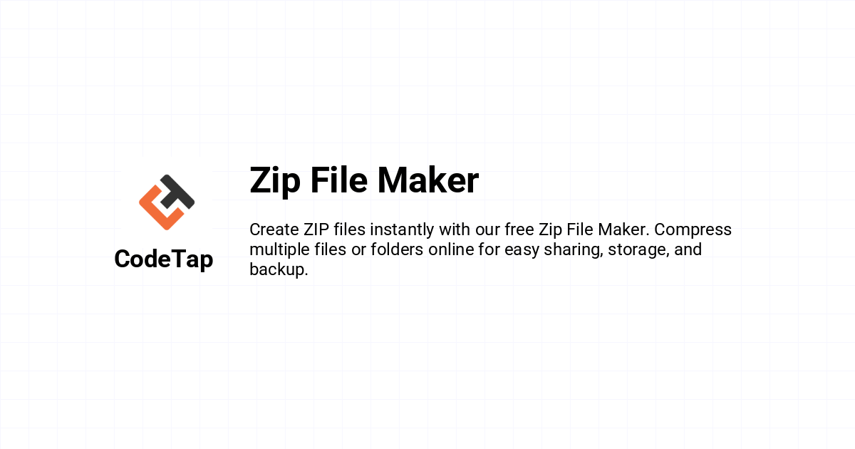 Compress your files quickly and efficiently with our free Zip File Maker. Combine multiple files or folders into a single ZIP archive for easier storage, sharing, or backup. Perfect for students, professionals, and developers who want a fast, browser-based solution.